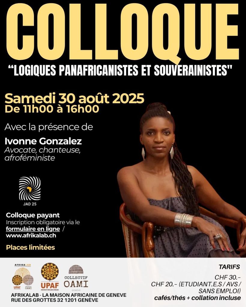 La JAD approche à grand pas! Une permanence contre le racisme antinoir sera inaugurée! Le cocktail suivra à à 18h. Le 30 août, le colloque « Logique Panafricanistes et Souverainistes » ivonnedecuba, fondatrice du projet @noircirwikipedia , est une des invitées du colloque! Avec: @amzatboukari , @Flore Nda Zoé , @Kanyana Mutombo , @ Karl Mayala Bizet, @Medina Antonio Muanda. Messages vidéo de: @nath_yamb et @elom20ce Prenez vous places. Inscrivez vous dans la page web: http://www.afrikalab.ch/activités-culturelles/notre-programme/